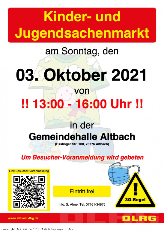 Nachdem durch die Pandemie die letzten zwei Kinder- & Jugendsachenmärkte abgesagt werden mußten, freuen wir uns schon auf den 03.10. wenn wir wieder einen Markt stattfinden lassen können. Aufgrund der noch aktuellen Vorgaben der Gemeinde muss der Markt deutlich verkleinert werden. Aber um wieder ein wenig Normalität in der Alltag zu bekommen haben wir uns entschlossen, trotzdem den Markt durchzuführen. Im Markt wird aktuell neben der Maskenpflicht auch die 3G-Regel umgesetzt. Es wird um eine Besucher-Voranmeldung gebeten für gewissen Aufenthaltszeitfenster. Für spontane Gäste gibt es vor Ort die Möglichkeit sich für ein Aufenthaltsfenster zu registrieren wenn noch freie Plätze vorhanden sind. Weitere Informationen finden Sie auf unserer Kinder- und Jugendsachenmarkt Homepage: ht ... Mehr erfahren