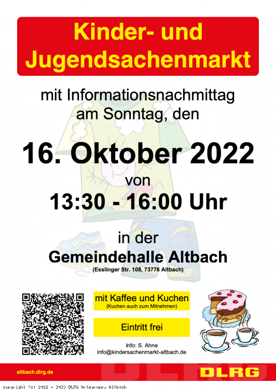 Weitere Informationen (auch zu Coronabestimmungen) finden Sie auf unserer Kinder- und Jugendsachenmarkt Homepage: https://www.kindersachenmarkt-altbach.de ... Mehr erfahren