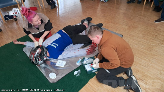 Anfang Juni veranstaltete das DRK Altbach exklusiv für die Rettungsschwimmer der DLRG Altbach zwei Erste-Hilfe-Kurse. Mit vielen praktischen Übungen und Fallbeispielen konnten wir uns optimal auf die beginnende Schwimm- und Badesaison vorbereiten. Der Schwerpunkt lag vor allem bei der Durchführung der Herz-Lungen-Wiederbelebung (HLW) bei Erwachsenen, Kindern und Kleinkindern sowie bei der Wundversorgung verschiedener Verletzungen. Wir bedanken uns ganz herzlich bei Bianca Gehringer und Thomas Gehringer für die tolle Durchführung. ... Mehr erfahren