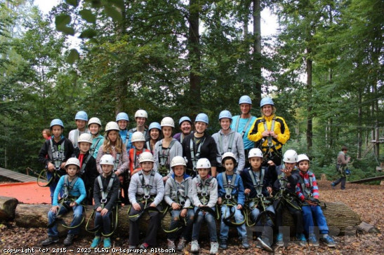 Einer Einladung des Jugendvorstands der DLRG Ortsgruppe Altbach folgend verbrachten über 40 Kinder, Jugendliche und Erwachsene aufregende und fröhliche Stunden in den Wipfeln über Plochingen. Um 14:00 Uhr war Treffpunkt beim Kletterwald. Nach einer Einführung musste zunächst ein kleiner Übungskurs absolviert werden, um sich mit dem Klettergurt und der Sicherung vertraut zu machen. In mehreren Gruppen aufgeteilt startete man hoch motiviert und sehr neugierig in die Parcours, die mit verschiedenen Farben von leicht bis schwer gekennzeichnet sind. Erst da wurde so manchem bewusst, auf welche körperliche Hausforderung er sich eingelassen hatte. Es wurde geklettert, gehangelt, balanciert, auch gezittert, gebibbert und gejuchzt. So waren alle intensiv besch& ... Mehr erfahren