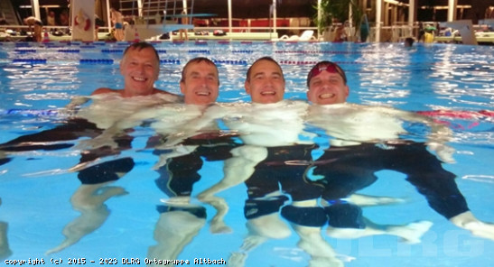 Am 05. Oktober fanden in Tübingen die Baden-Württembergischen Seniorenmasters der DLRG im Rettungsschwimmen statt. Achim Weber ging bei den Einzelmeisterschaften letztmalig in der stark besetzten Altersklasse AK 40 an den Start. In den drei Disziplinen: 100 m Hindernisschwimmen in 1:14,82 min., 50 m Retten in ausgezeichneten 0:41,00 min. und 100 m Retten mit Flossen in 1:11,16 min. erreichte er in der Endabrechnung einen sehr guten 3. Platz. In der Mannschaftswertung startete Achim Weber in einer Mannschaft für Reichbach/Fils mit den Kameraden Katja Nickl, Reinhard Nickl, Bernhard Pursch und Markus Lederer in der Altersklasse AK 170. AK 170 bedeutet, dass die 4 jüngsten Mitglieder der Mannschafft zusammen mindestens 170 Jahre alt sind. Aufgrund von Verletzungen und u ... Mehr erfahren
